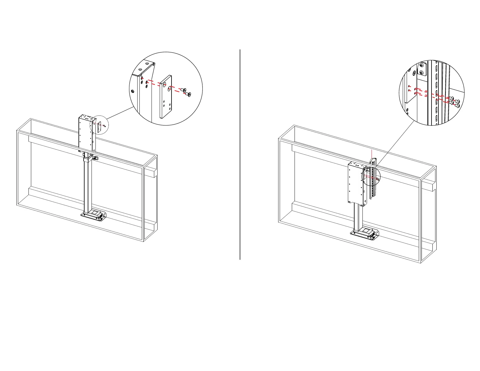 11 a . Install the Hinged Top Guide Adapter on the right side of the Screen Support using (2) M6 x 12 FHMS in the countersunk holes.
