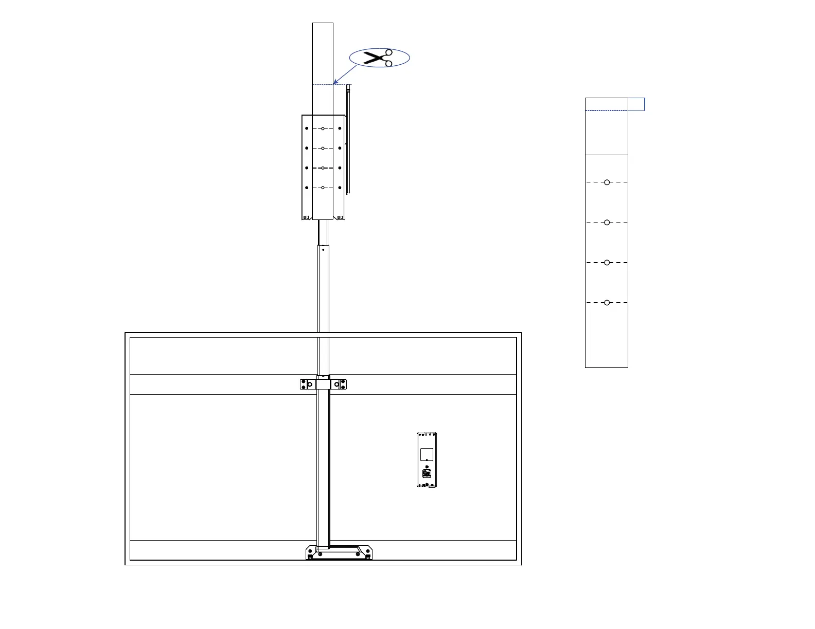 13a. Raise your lift, align the template with the holes on the screen support, then fold or cut the template to be flush with the top of the Hinged Top Guide.