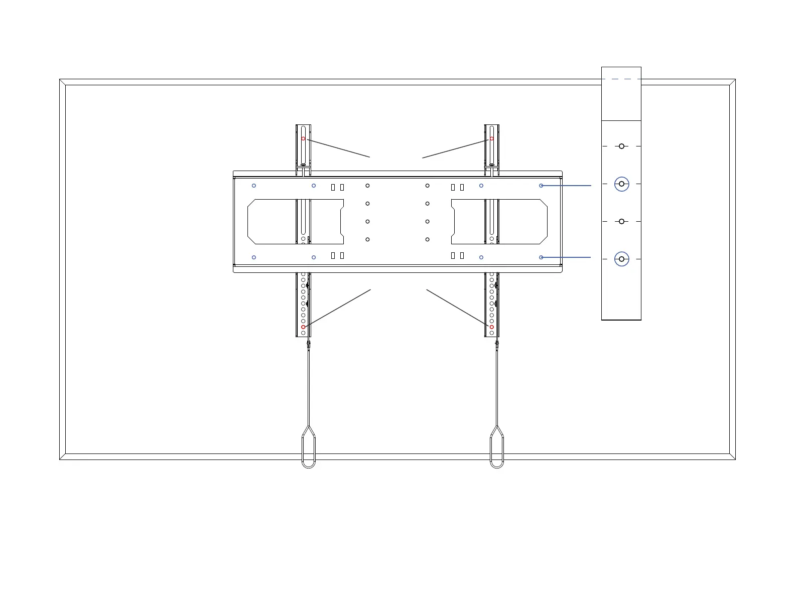 14d. Adjust the vertical position of both until (2) of the holes on the Screen Backplate line up with the lines on the template and the Vertical Mounting Bars align with the VESA