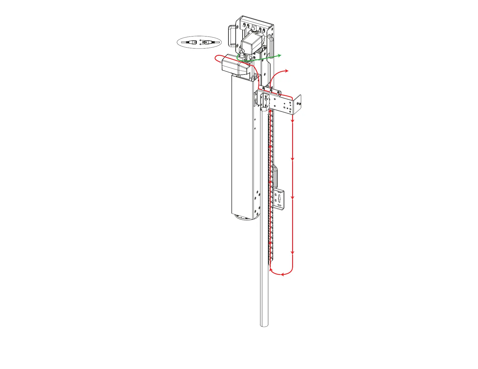 5a. Connect one end of the 1m Motor Cable to the top actuator and run the rest of the cable along the green path.
