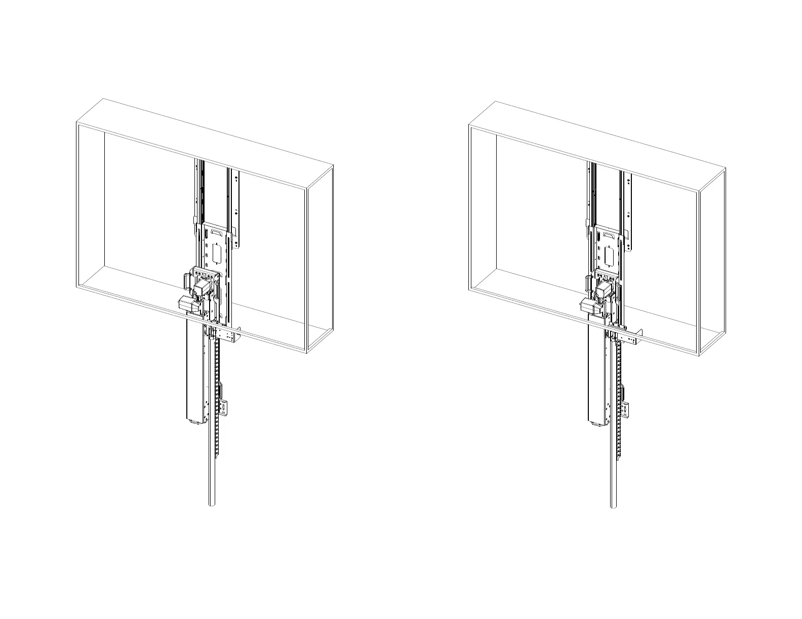 8. Using the handles on the side of the Lift Assembly, hoist the Lift Assembly onto the second set of hooks on the Installation Bracket.