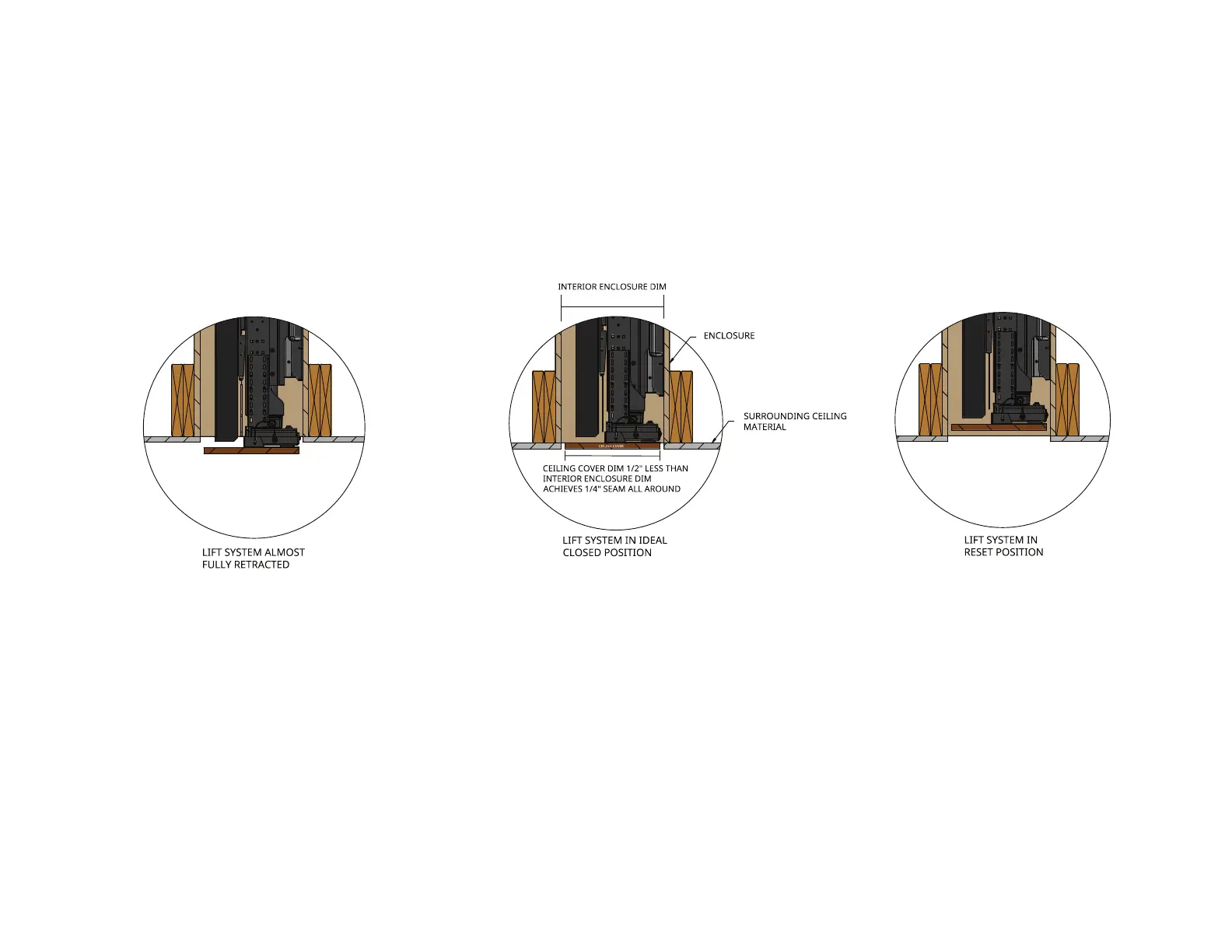 CREATING A CEILING COVER CATCH WILL CAUSE DAMAGE TO YOUR LIFT SYSTEM AND VOID THE 10-YEAR WARRANTY.