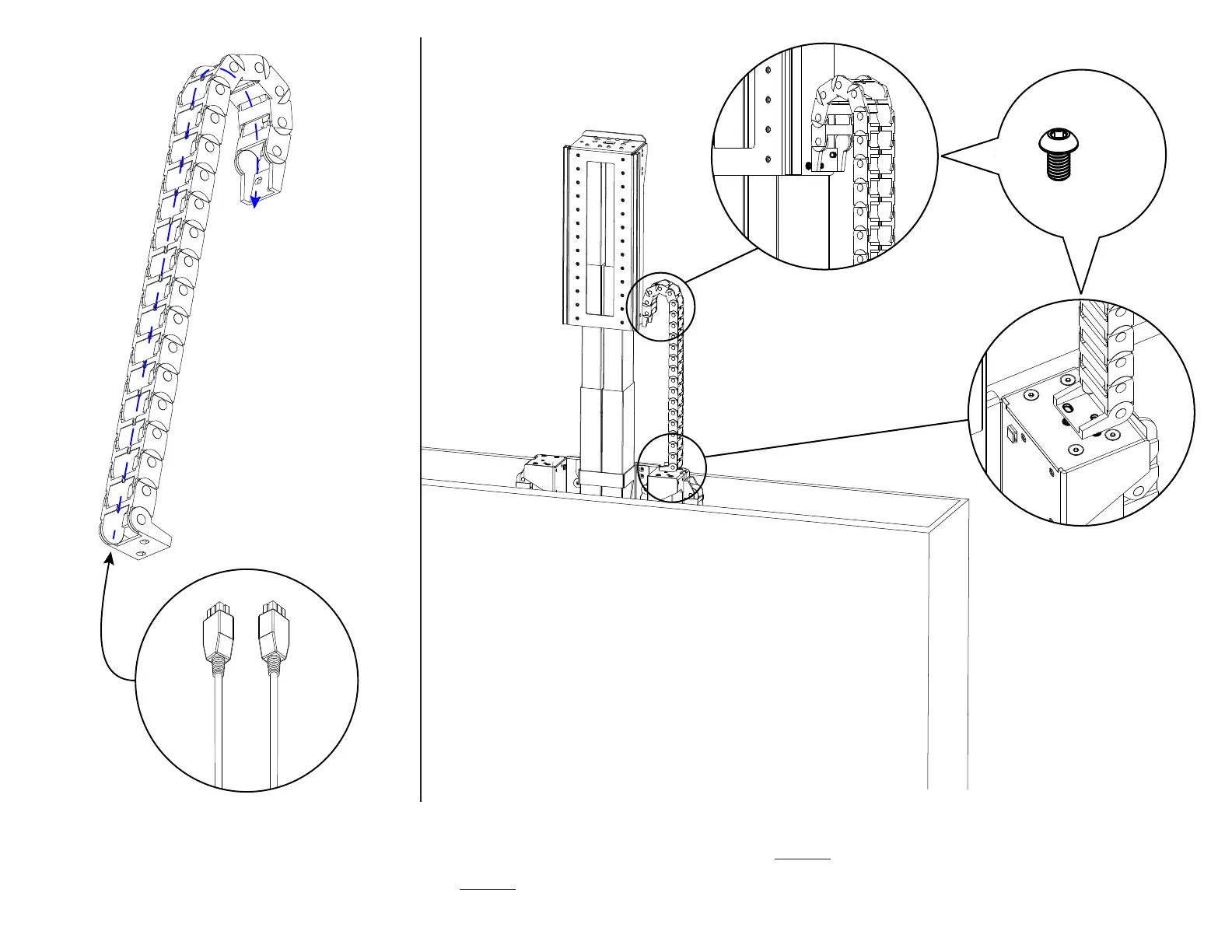14c. Attach the other end of the Upper Cable Track to the CB Side of the Upper Assembly using (2) M6 x 10 BHMS.
