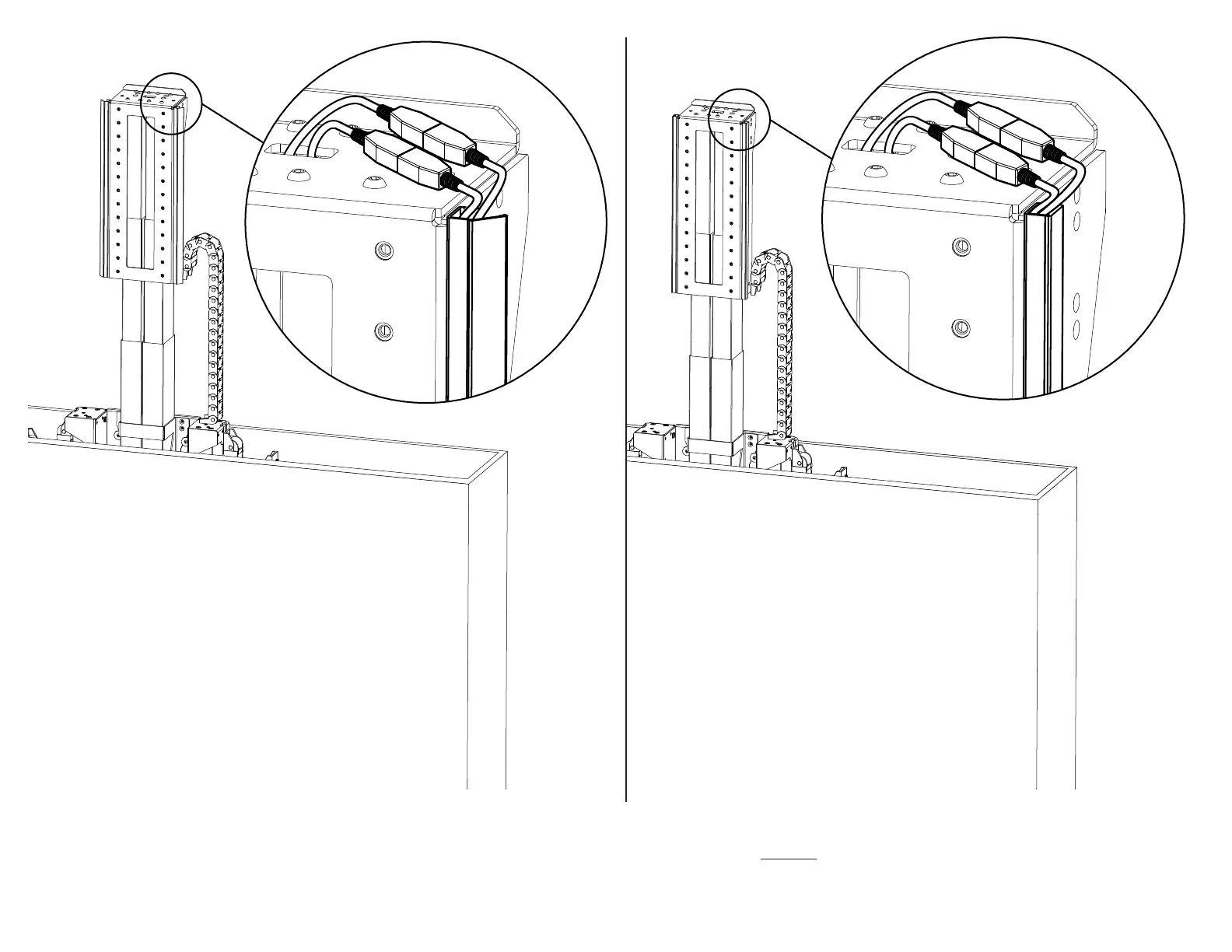 15b. Place the cables into the Plastic Channel without them overlapping, then snap it shut. Feed any remaining slack down through the Upper & Lower Cable