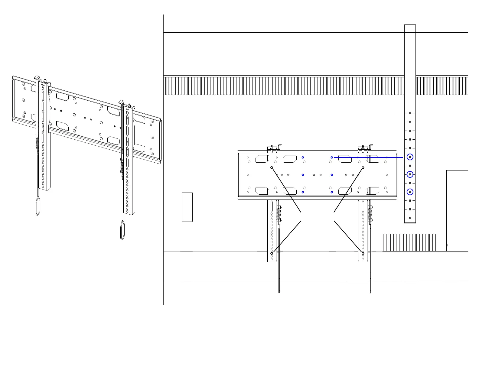 21d. Mark the holes for the Screen Backplate on the template and the holes for mount your TV on the Vertical Mounting Bars.