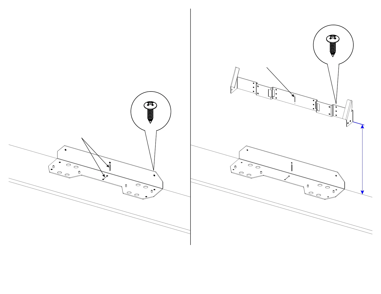 1b. Attach the Rear Support to the rear of your cabinet, 15.75”(L-85) or 23.75”(XL-85) from the bottom of your Base Mount, using (12) #10 x ¾” THWS.