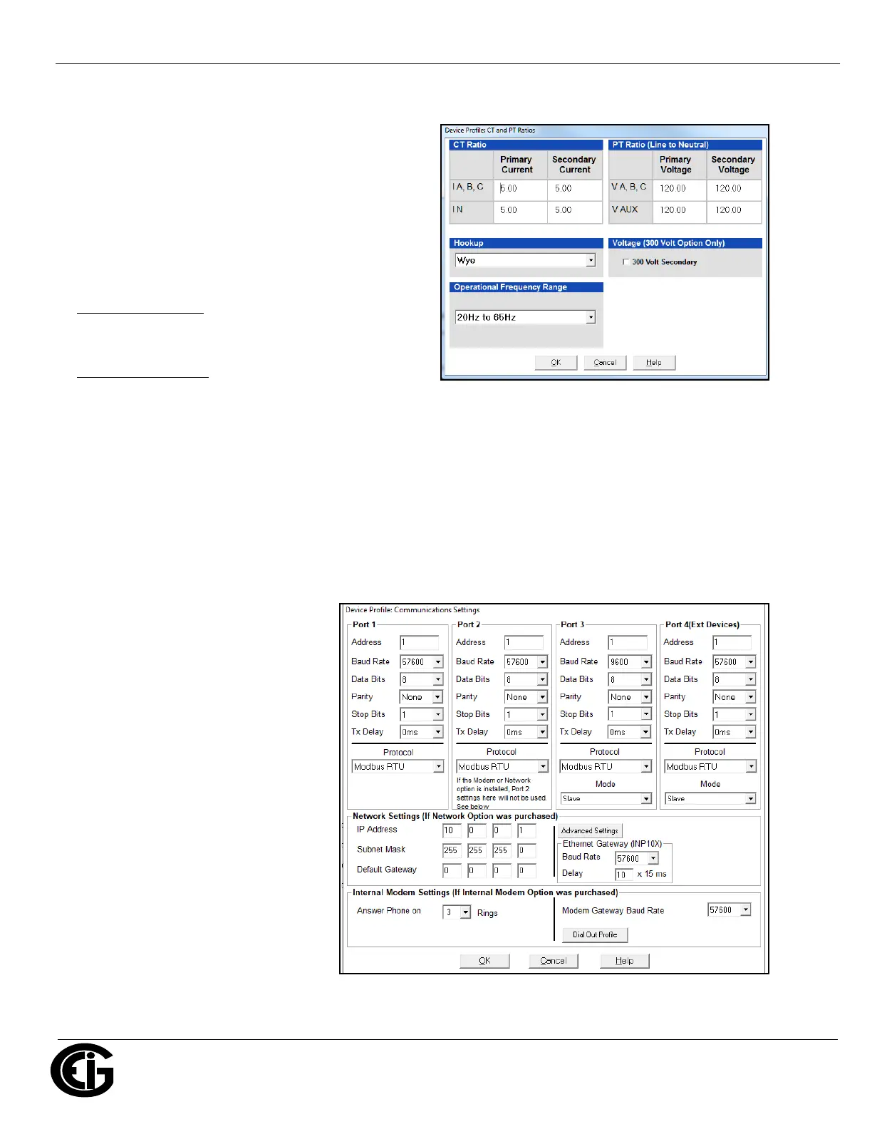 a. Enter CT Ratios: Primary (1-65535) and