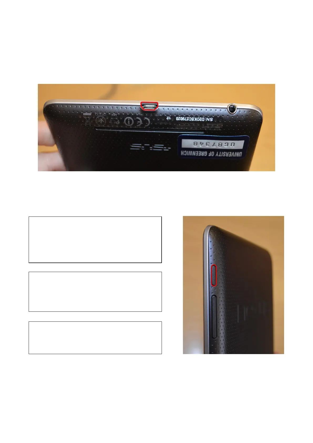 Connect the micro USB cable to Nexus 7 and to the charging unit. Then connect the charging unit to