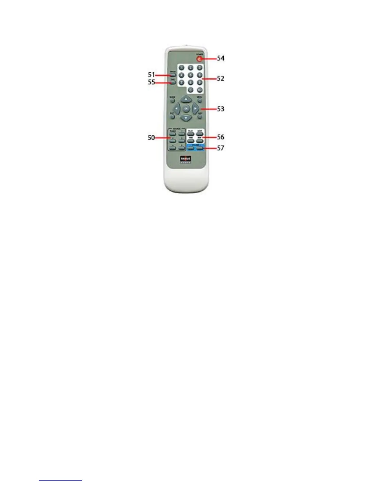 51. Track Select Button – Press to select a specific track when used with numeric buttons for