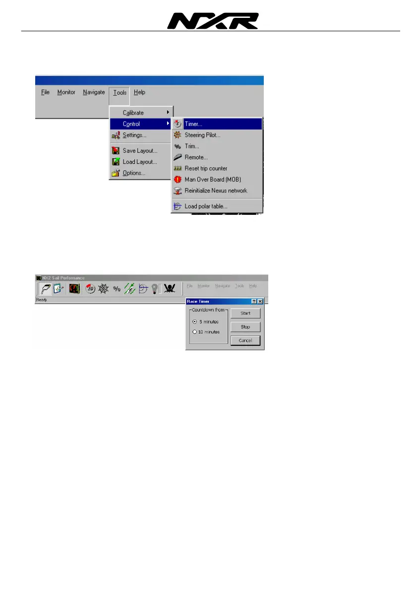 Here you may start the Race timer at 5 or 10 minuet count down. This is only possible