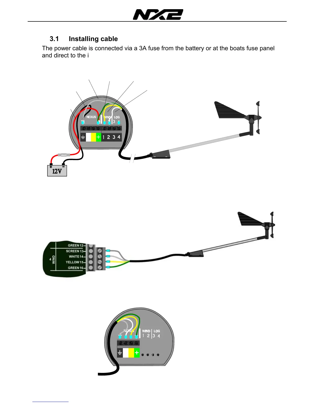 The power cable is connected via a 3A fuse from the battery or at the boats fuse panel