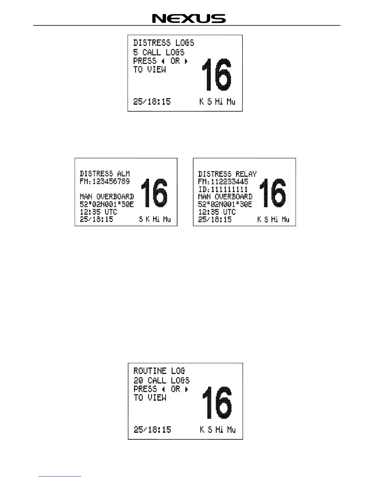If there are any distress calls in the distress log screen, press the ◄ or ► key to move