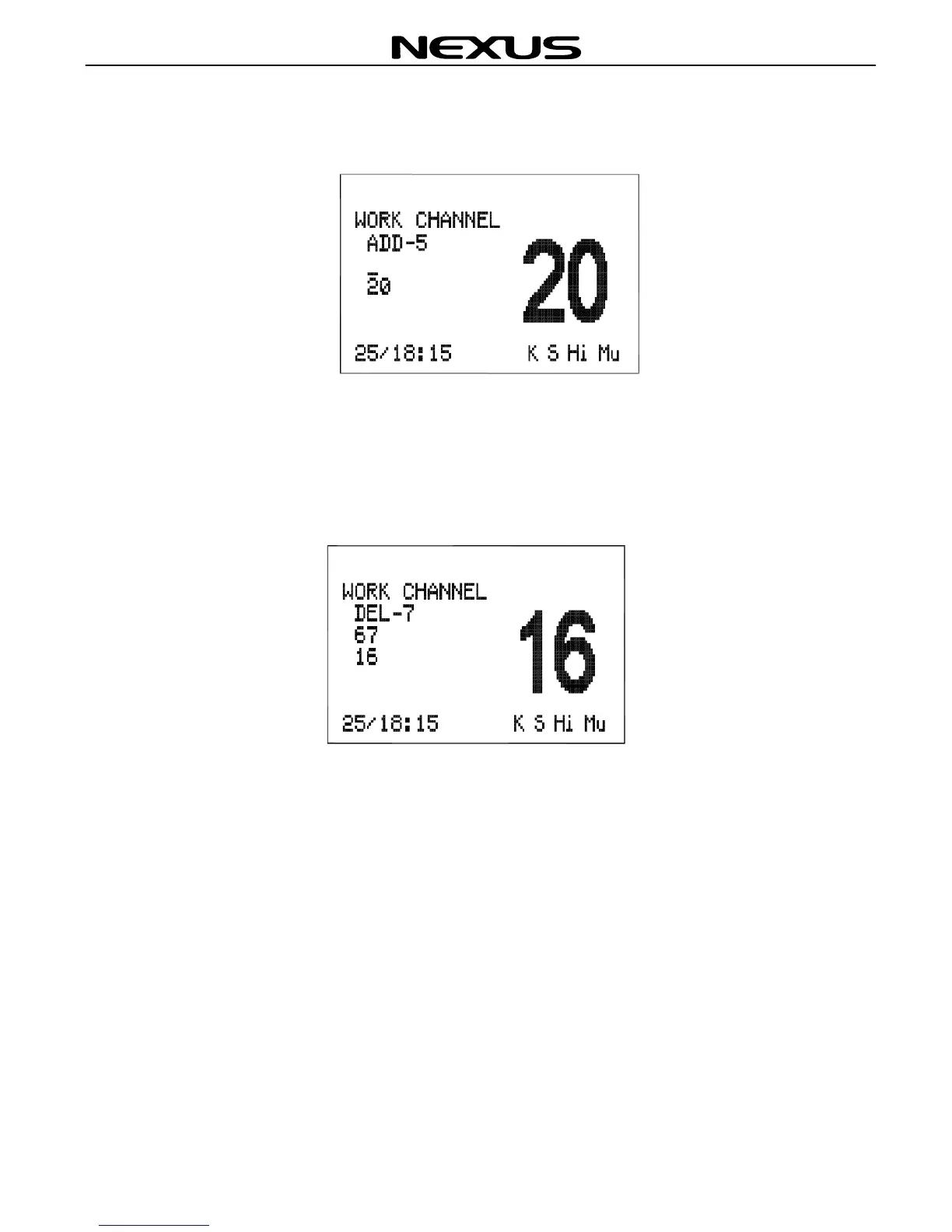 To delete a Work Channel, press ◄ or ► key to move the cursor on the WORK
