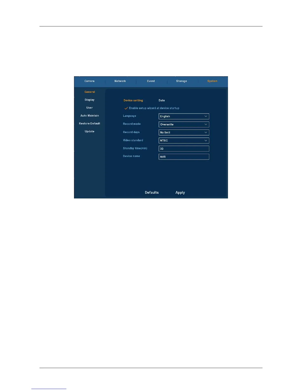 system so as to operate NVR. Default standby time is 30 minutes. And