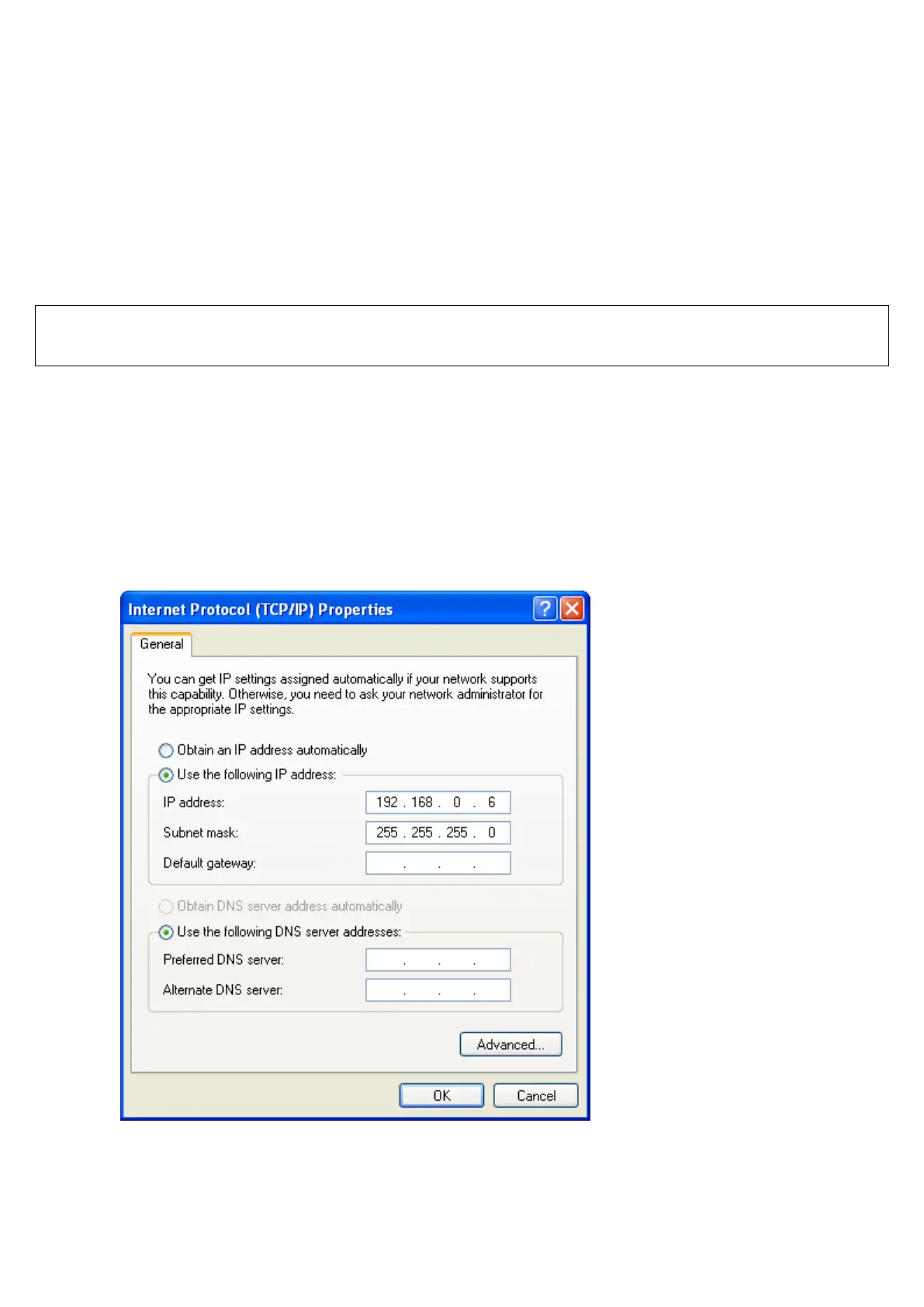 STEP 3: Change the IP address to the domain of 192.168.0.x (6<x<255) with subnet mask of