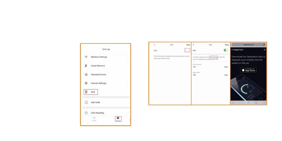speed test, click on Online Test, to install Speedtest.net app and