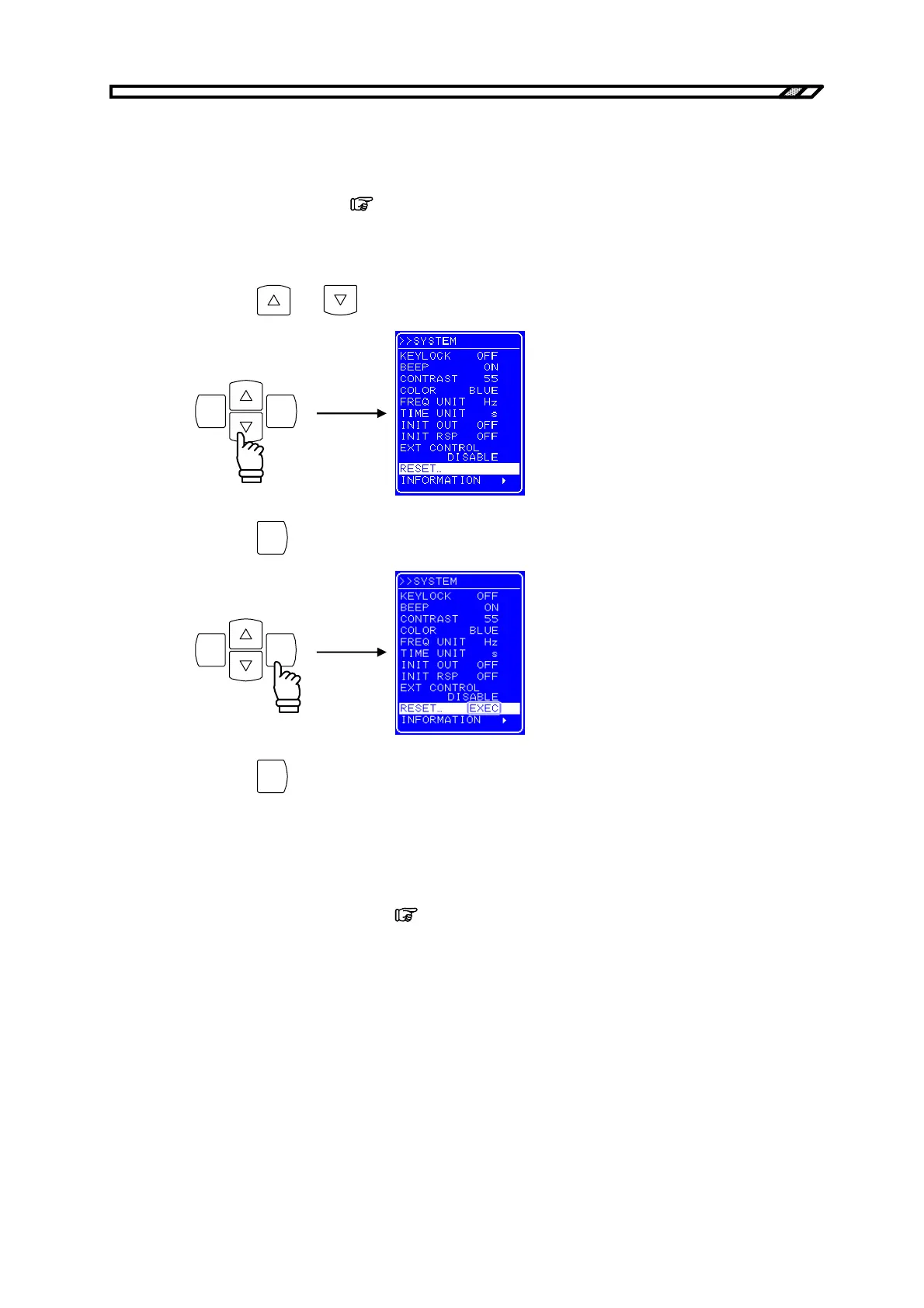 and keys to move the cursor to [RESET...].