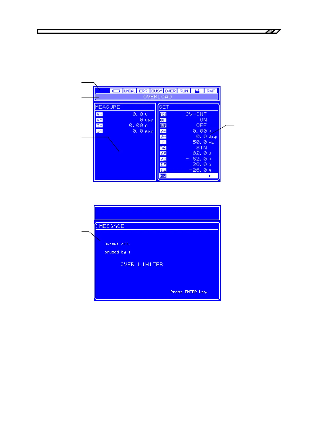 The LCD on the operation panel is displayed divided into several windows, as shown in Figures 4-1 and