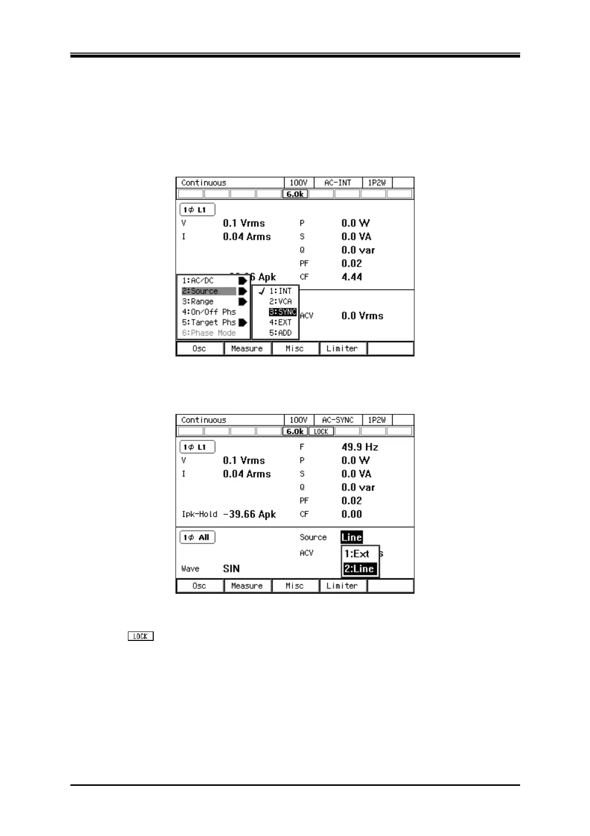 Press the [Osc] soft-key and select [3:SYNC] from [2:Source].