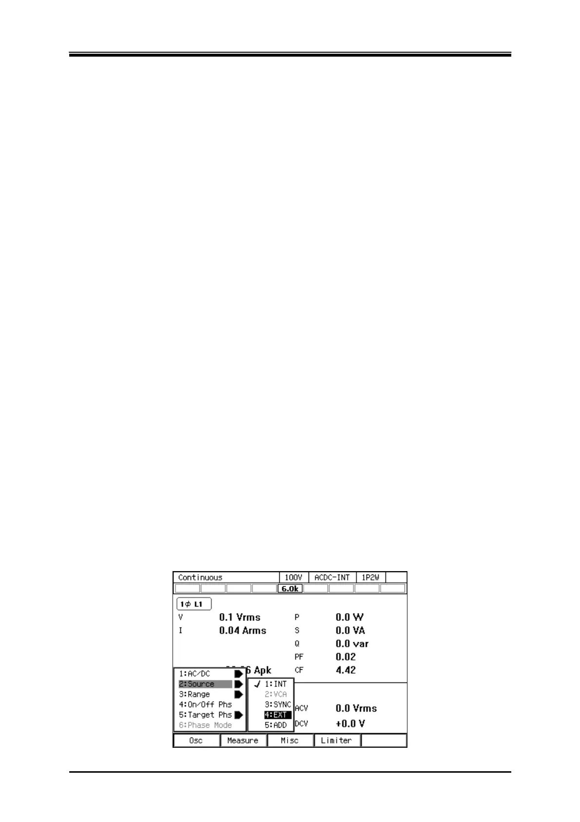 Press the [Osc] soft-key and select [2: Source], then : select [4:EXT] or [5:ADD].