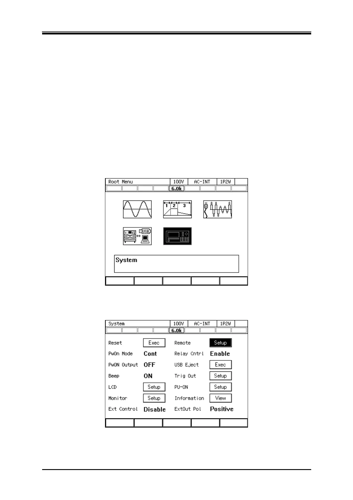 Press the MENU key to move to the root menu, then select [System]. The system setting
