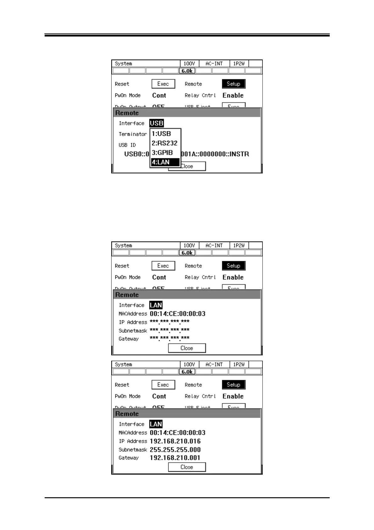 5. The current [MAC Address], [IP Address], [Subnet mask] and [Gateway] are displayed. When not
