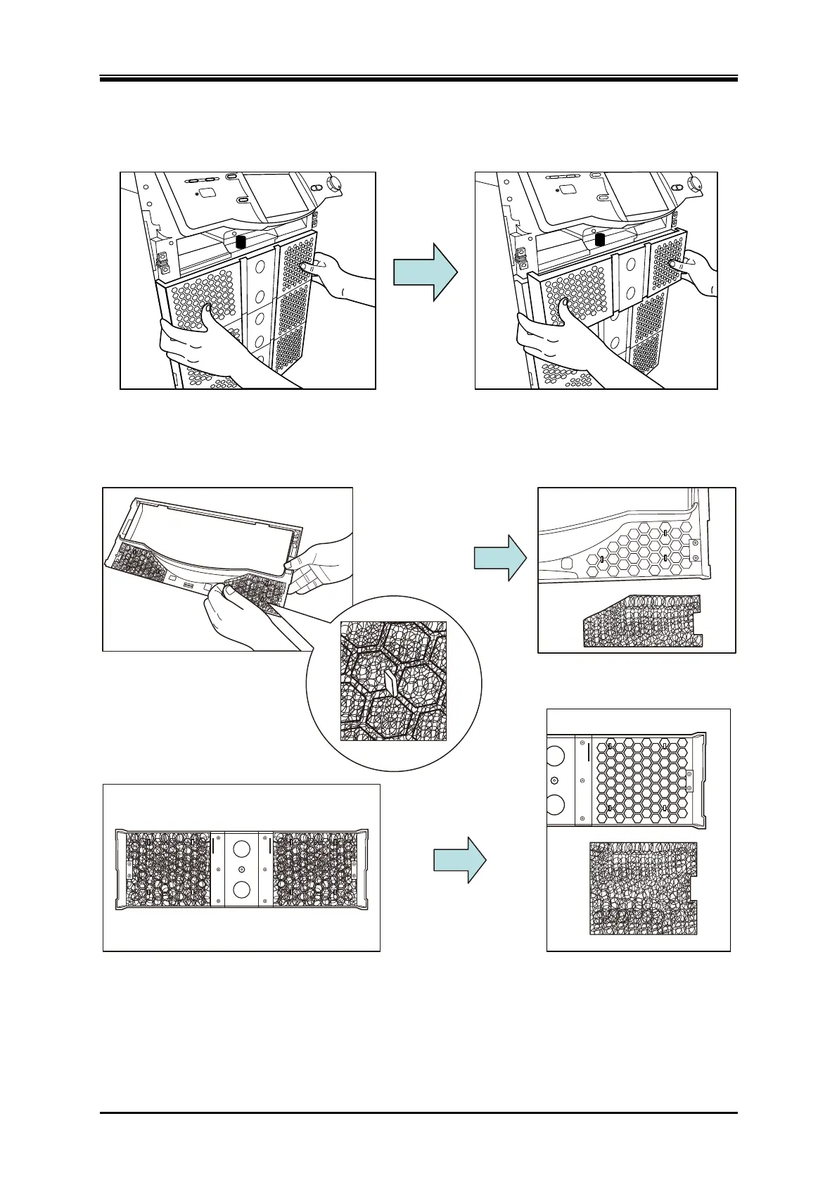 Remove the air filters from the back of each front grill. Be careful with the small claws on the