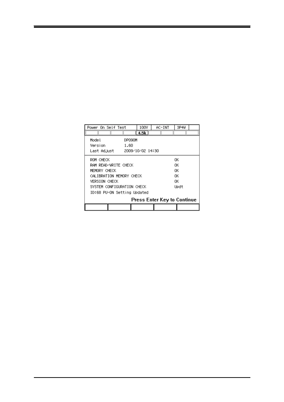 shown in Figure 3–4. Check the self check result and press the ENTER key to resume the