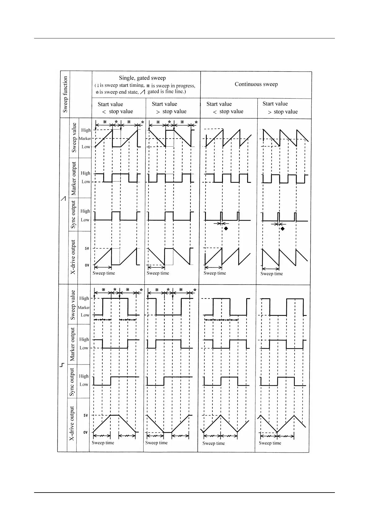 Sweep value and Z-MARKER/SYNC/X-DRIVE outputs
