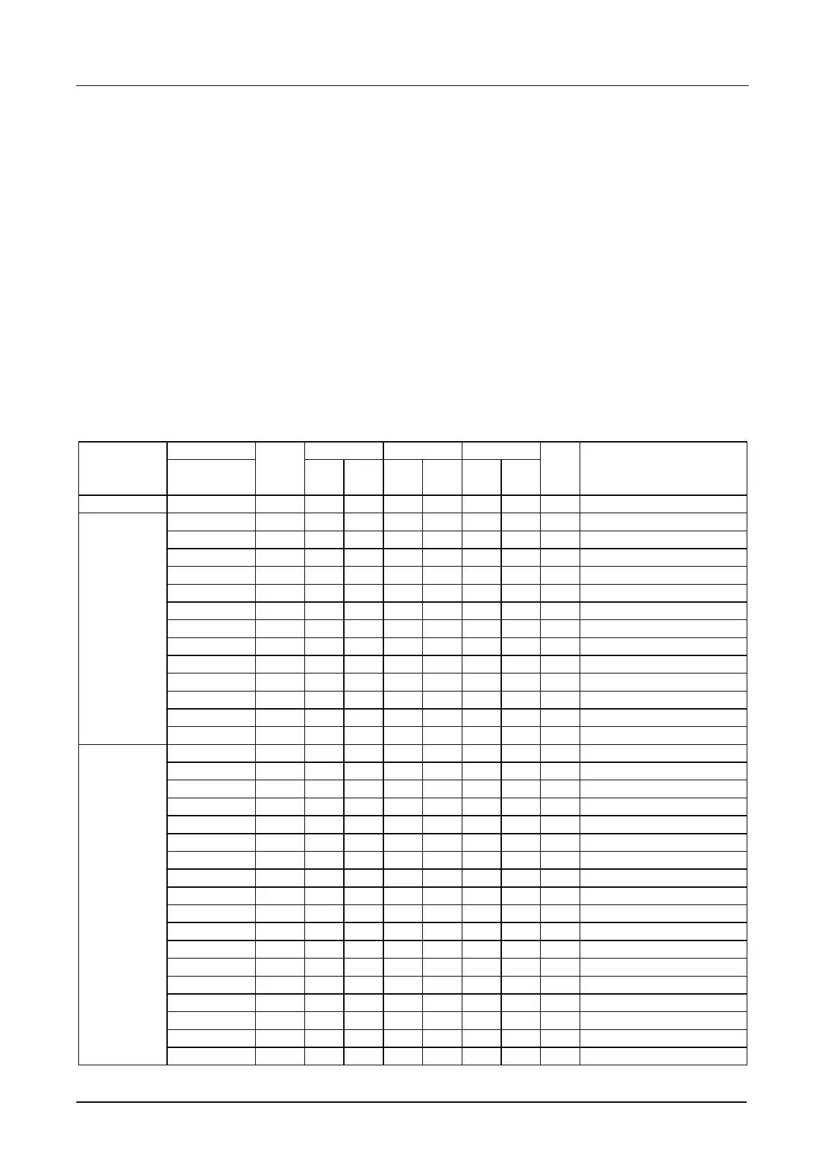 The channel modes and setting limits are indicated in the following table.