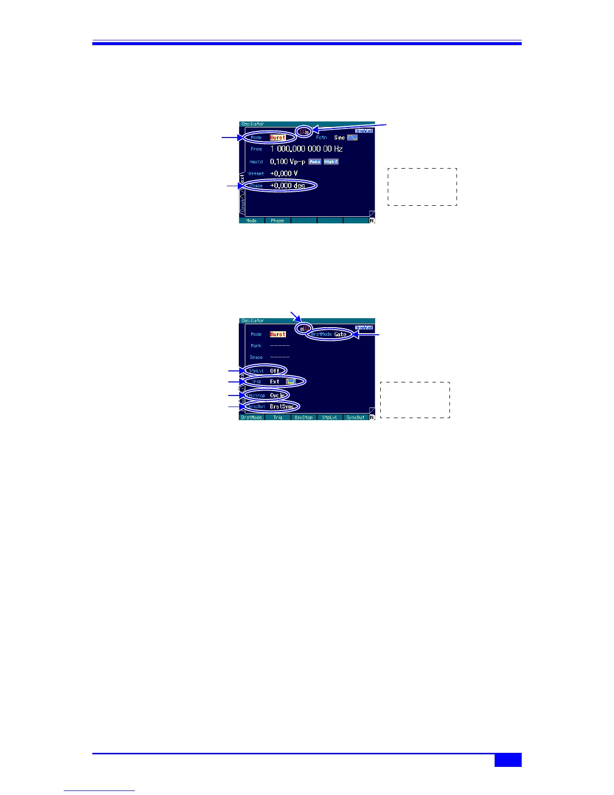 ■ 2nd page: Screen for the triggered gate oscillation settings