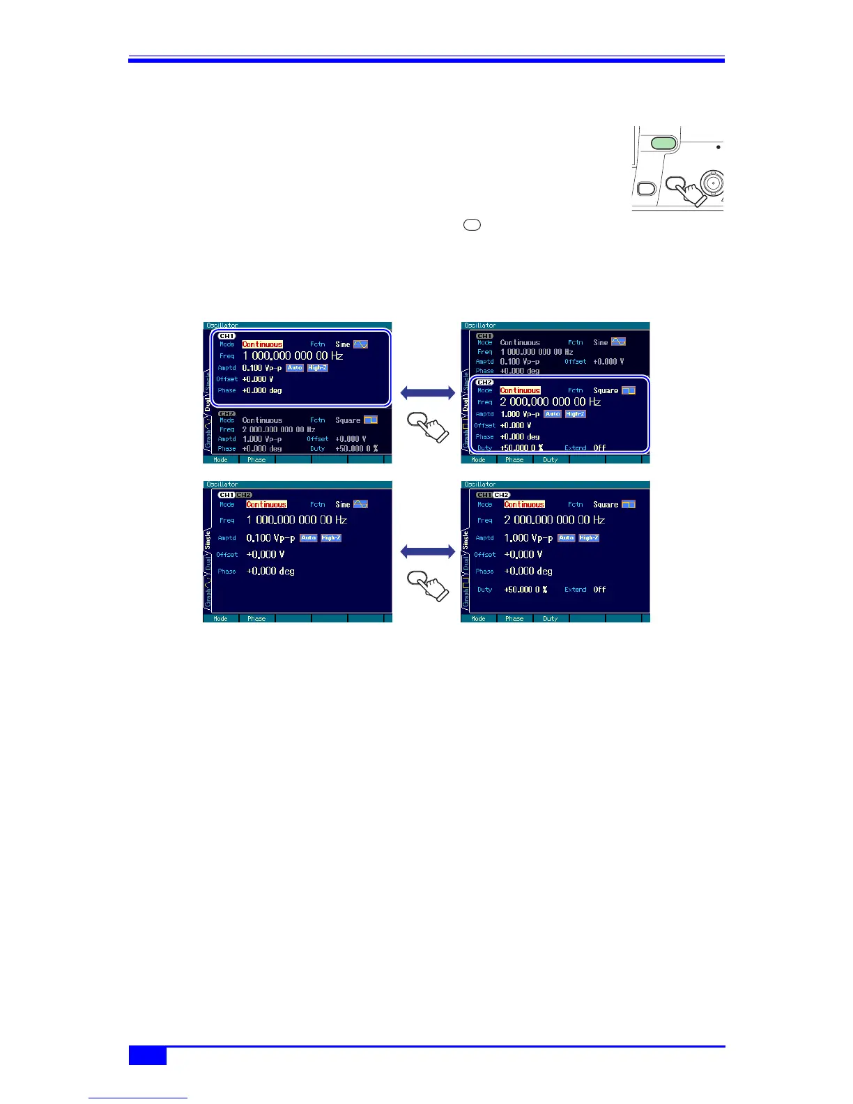 4.3.6 CH1/CH2 switching key and active channel (WF1974 only)