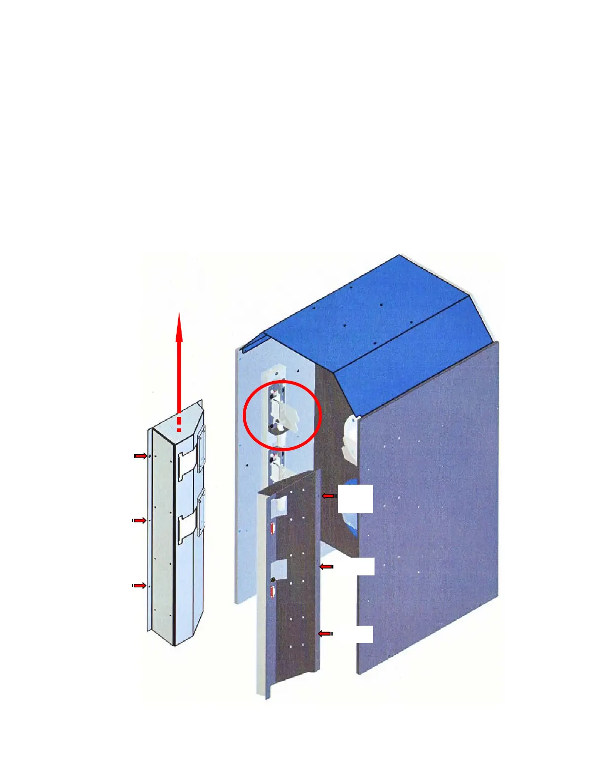move the four lower bolts and loosen the two top bolts. Slide the cover up until the top