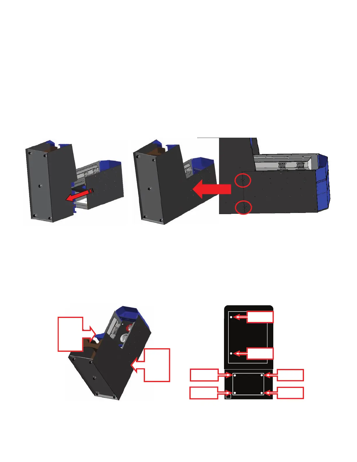 With two people position the upper rear and conveyer base as shown in below. Slide