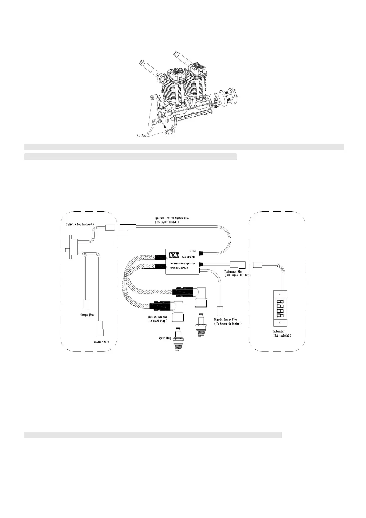 1. Firmly install the connected engine on the RC aircraft, lock the propeller, keep the carburetor in the factory setting state, connect the spark