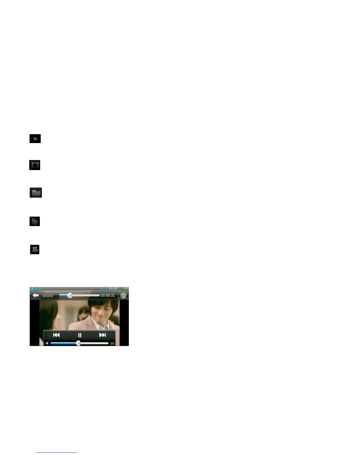 Selecione este ícone para ver os vídeos gravados com a câmara do MP5.