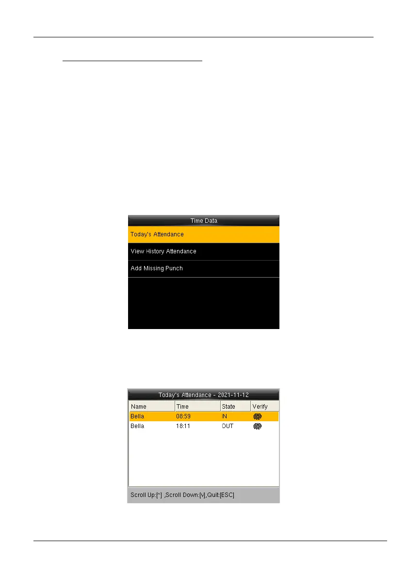 The clock is equipped with a provision to view the daily attendance of users. The steps to