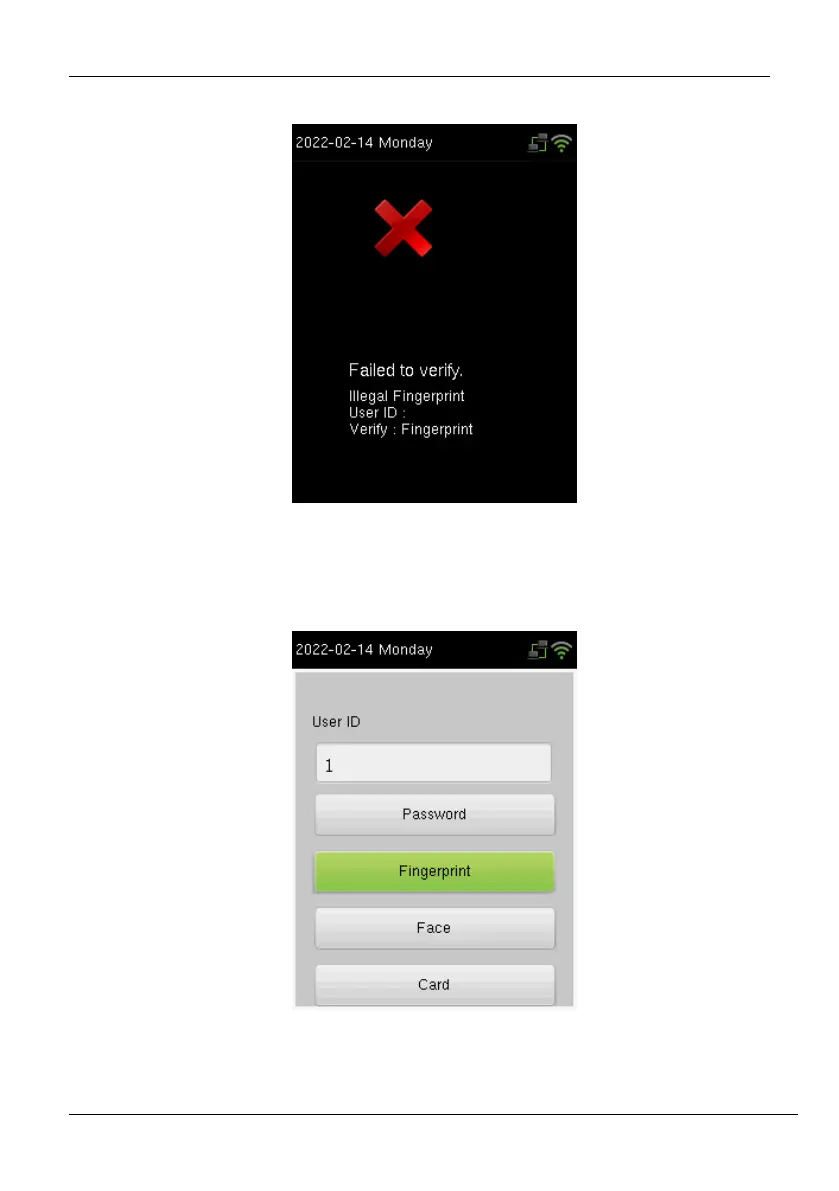 sensor with the fingerprint template saved for the corresponding User ID. Enter your User ID