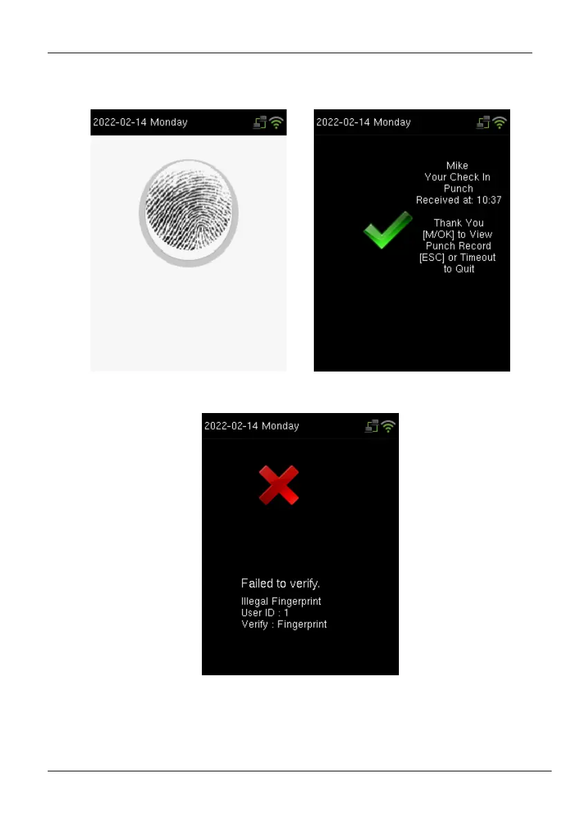 If the fingerprint matches the saved template, the verification is successful, and the success