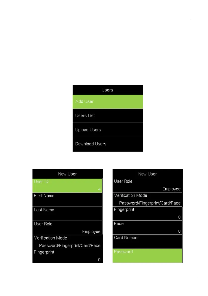 1. Go to [Users] and navigate to [Add User] by pressing the respective navigation key.