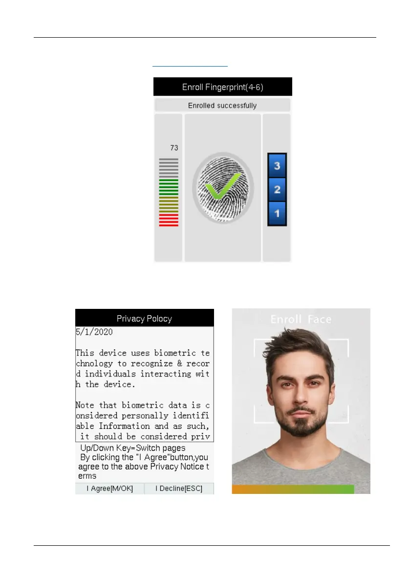 Face: To enroll the face, press <M/OK>. The interface to enroll the face will be
