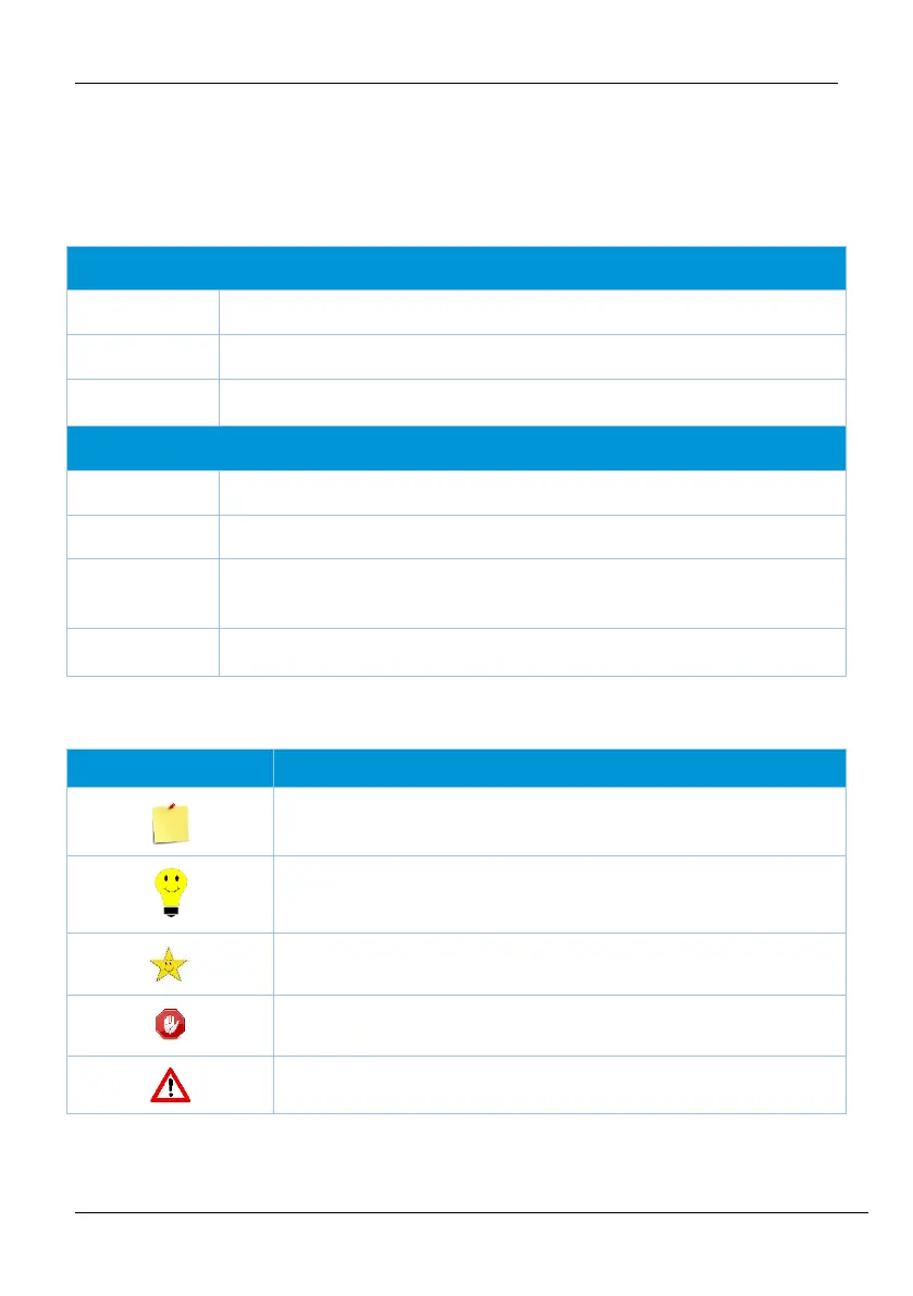 Conventions used in this manual are listed below: