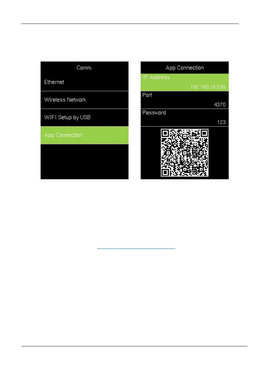 Go to [Comm.] and then [App Connection] to view the QR code.