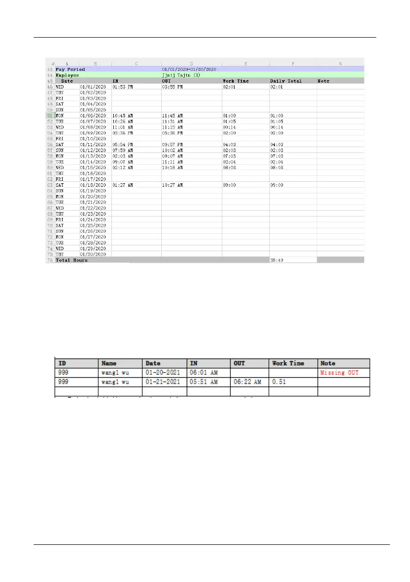 and OUT for the same user, the device will match the second IN and OUT and the report