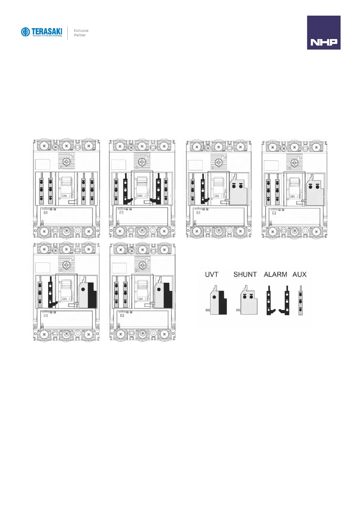 Left-side and right-side mounting locations are independent and accept unique combinations. For example, shunts and UVTs may only be mounted on the