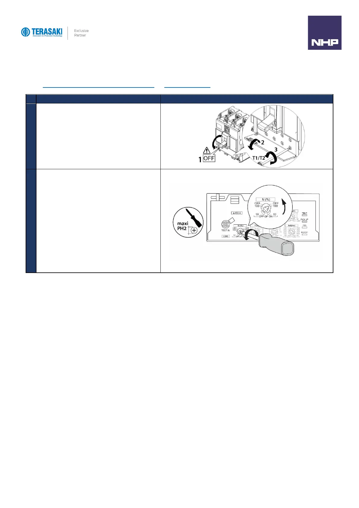 On the LSIG 4P variant P_BE MCCB, both NP and GF protection modes are configured by the N (%) adjustment rotary dials, which is performed as follows.