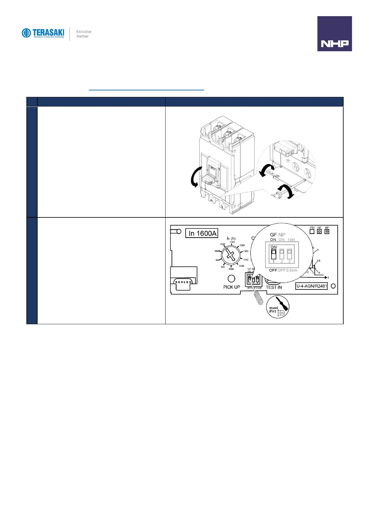 On the LSIG 3P variant B_BE MCCB, the GF protection is configured by the GF DIP switch, which is used to enable or disable GF protection, and is