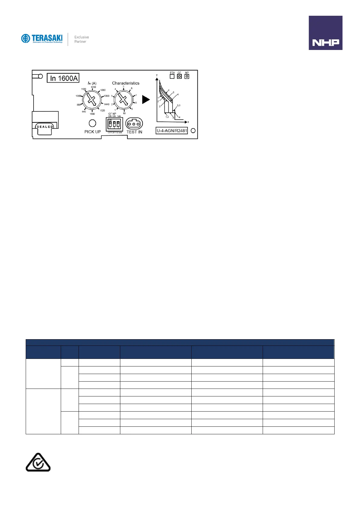 400A to 1600A: 10 characteristic curves,