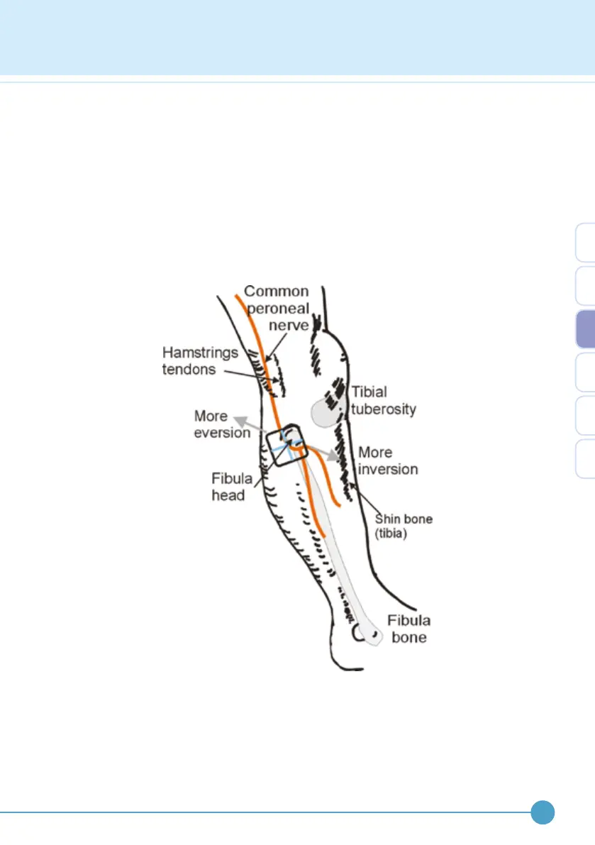 the outside of the shin bone. The indifferent electrode is placed approximately 5cm below