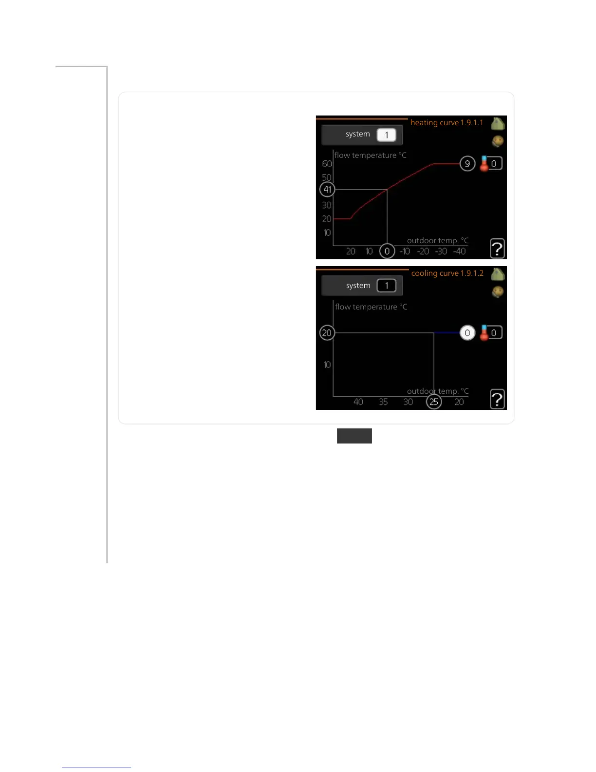 You can select heating or cooling in the curve menu. The next menu